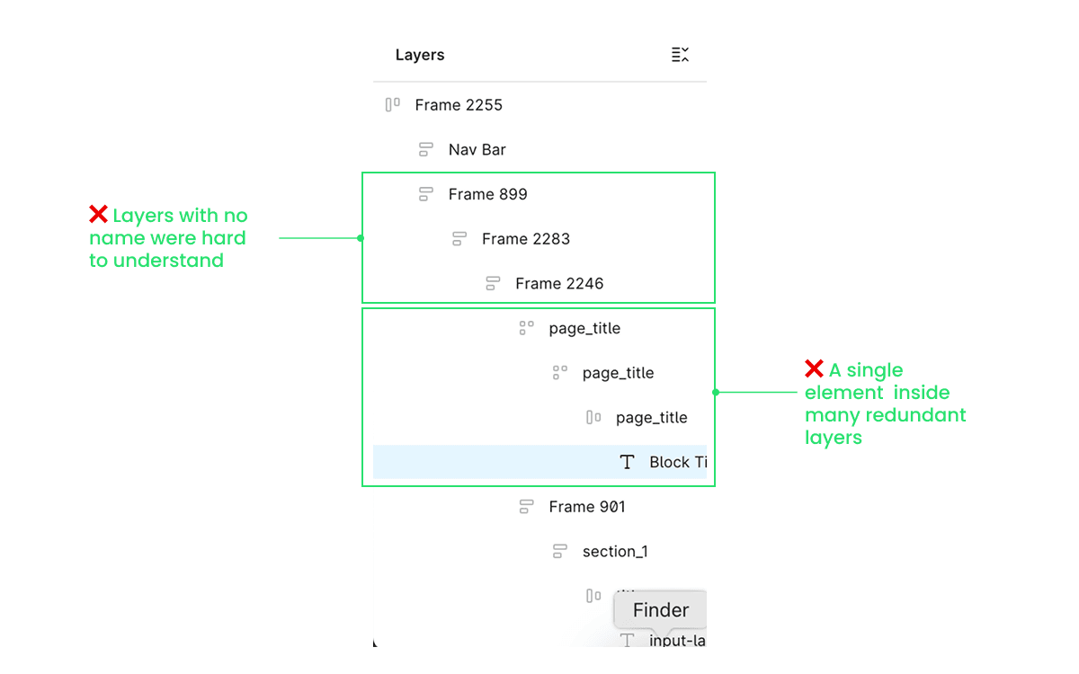When designers copied components from other screens, it’s common to not select the root layer, causing the new screen to have redundant layers, and the situation could get worse for subsequent screens.